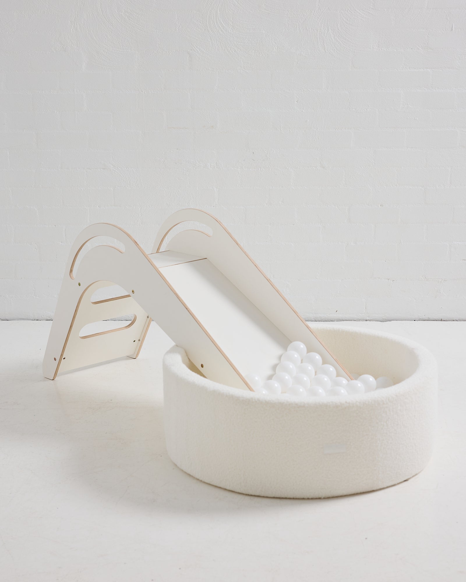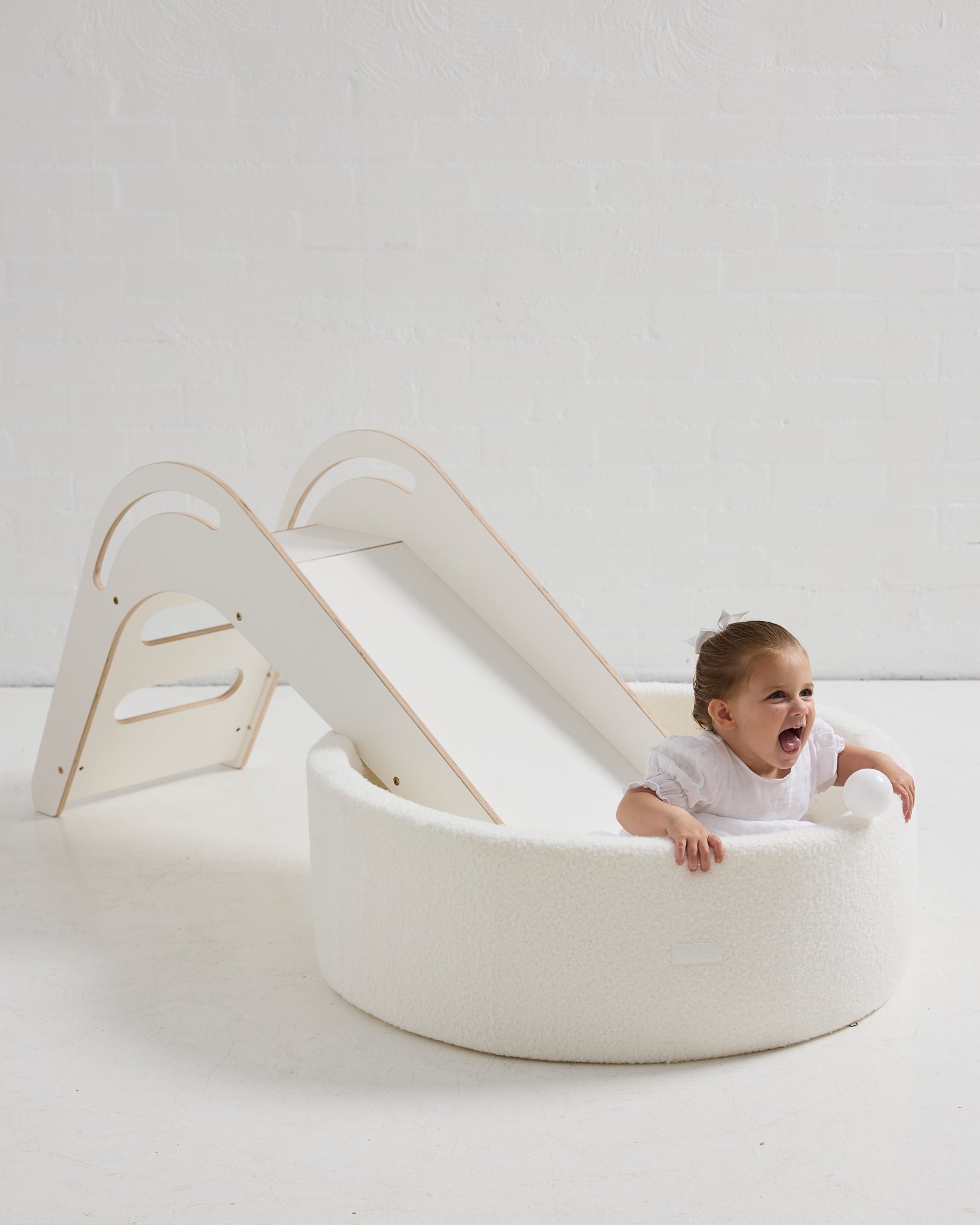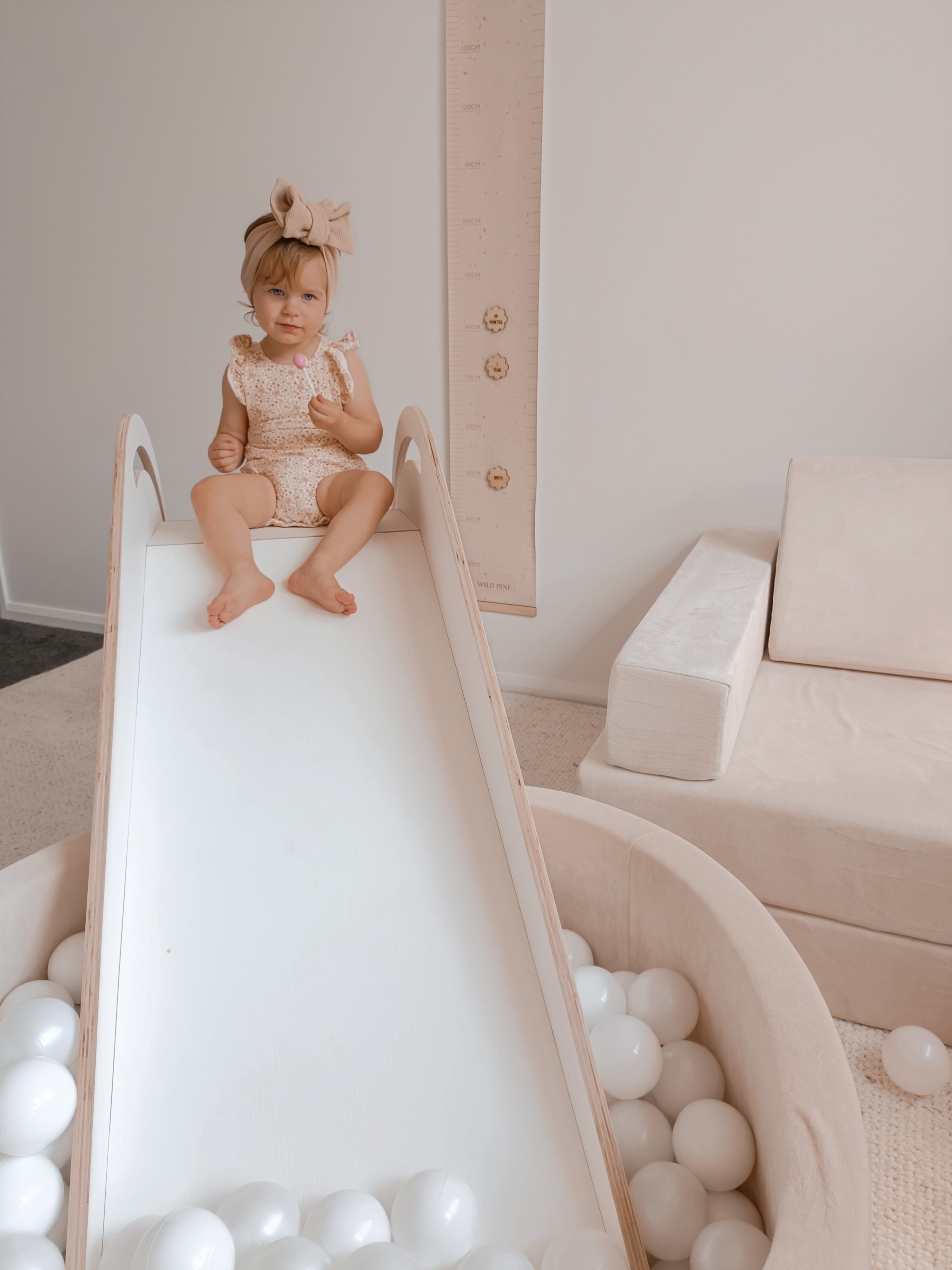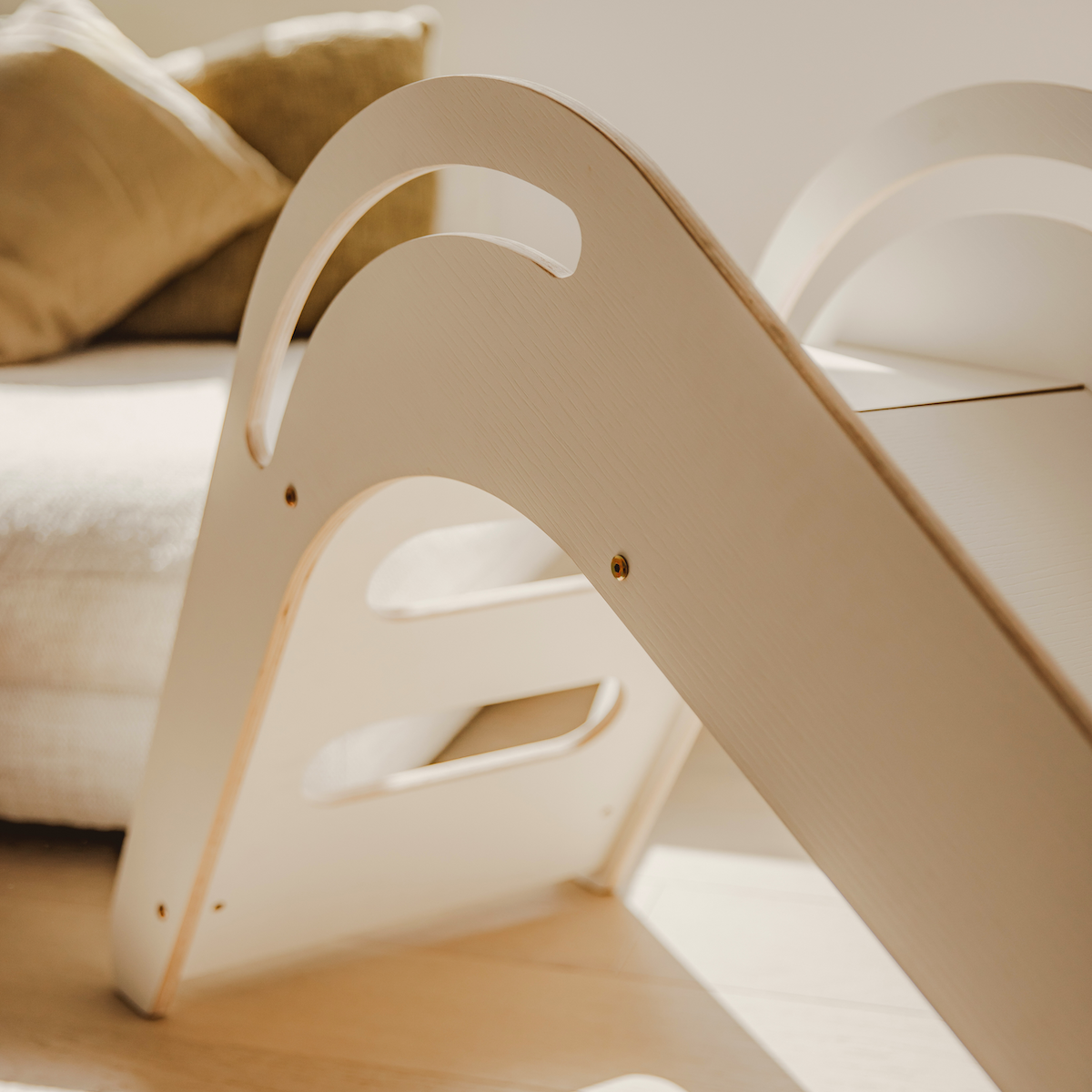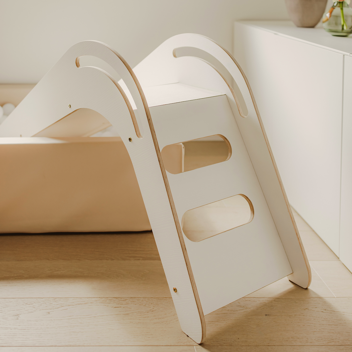 Which child does not dream of a slide at home? Create a home playground for your child and prevent boredom during bad weather! This slide is not just an indoor delight but also a perfect addition to any kids' room. On sunny days, take the fun outdoors, and easily wipe dry if the slide comes into contact with water.
