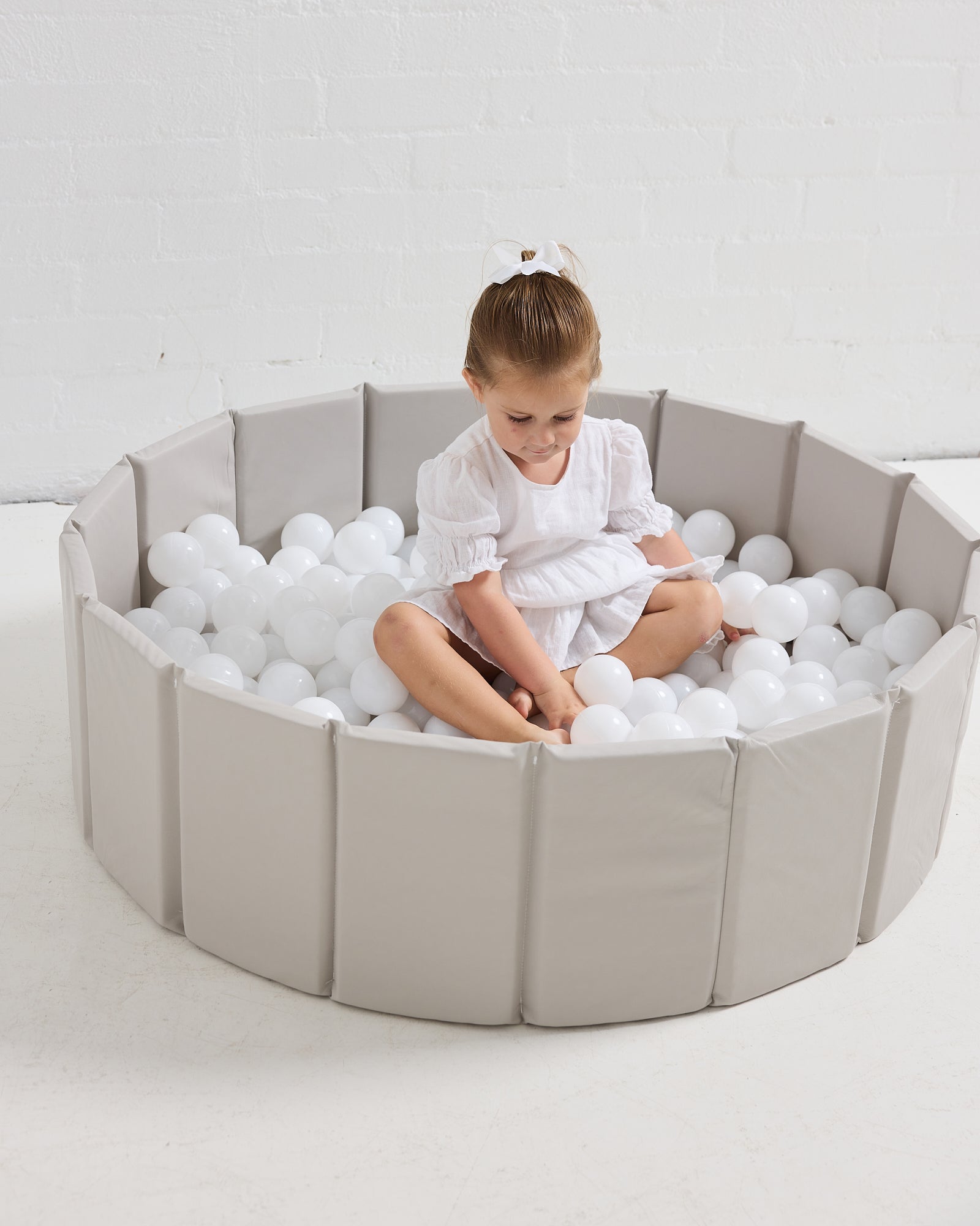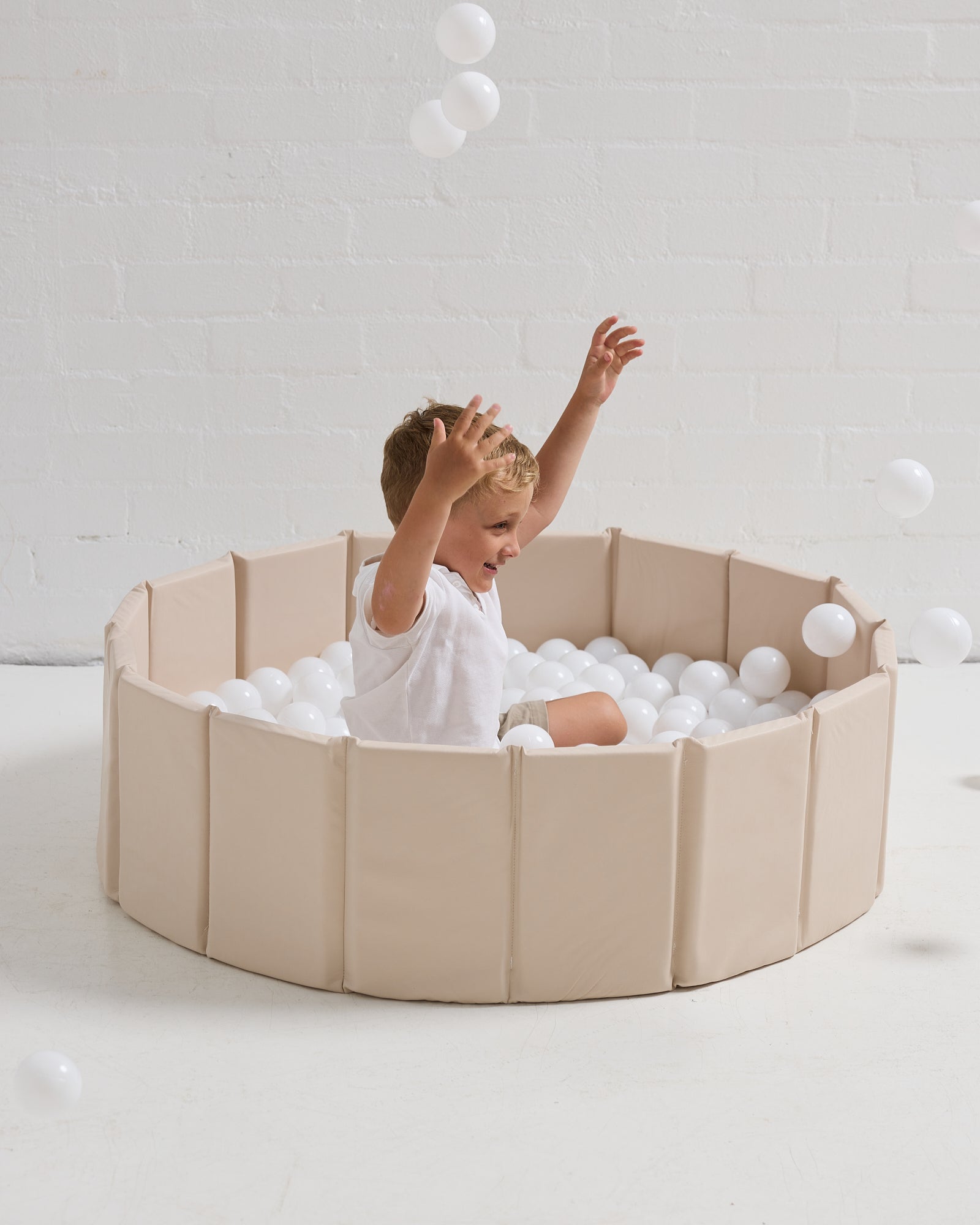 Foldable Ball Pit + 200 White, Pearl & Transparent Balls - Beige