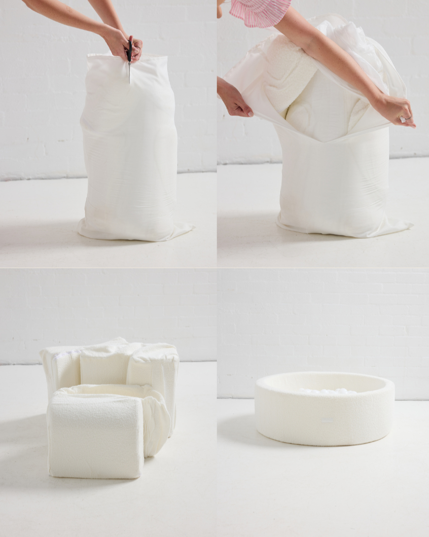 This luxurious addition to your home not only provides endless entertainment but also contributes to your child's sensory development. The machine washable covers ensure easy cleaning – just unzip and remove. Now available in a stunning Boucle fabric, the ball pit seamlessly fits into your home or style. The soft and light-weight foam allows for easy manoeuvring and bending.